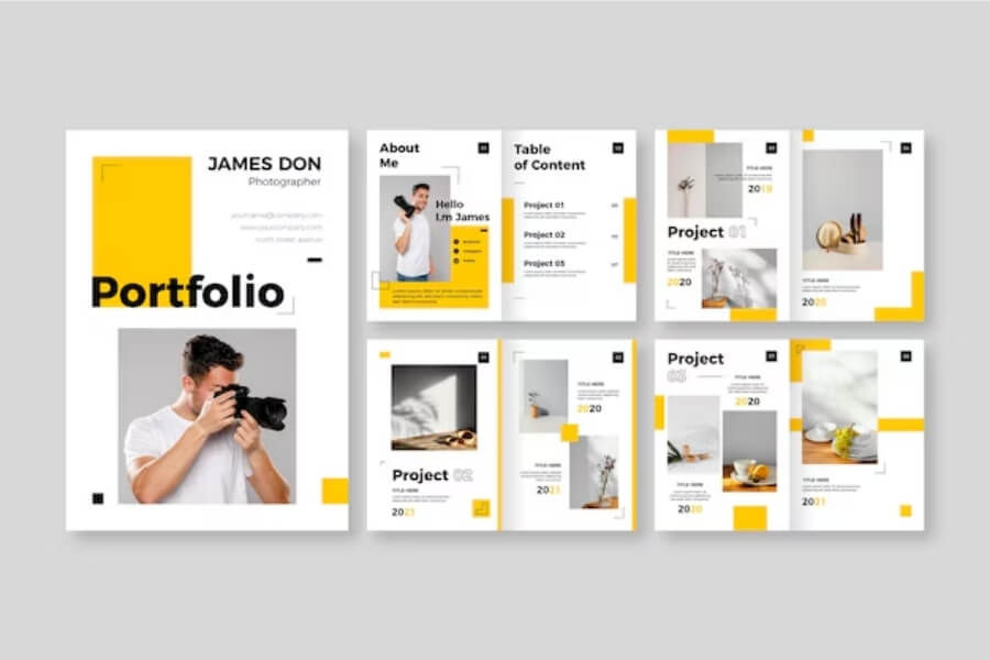 -Danh sách tác phẩm, ấn phẩm mang dấu ấn cá nhân của tác giả. Đây là nội dung quan trọng làm nên “linh hồn” của một portfolio. Ứng viên có thể trình bày theo nhiều hình thức khác nhau phụ thuộc và tên sản phẩm cụ thể và yêu cầu của nhà tuyển dụng. Ví dụ: như một cuốn Album ảnh, Album đồ họa hoặc một File PDF các tác phẩm, cũng có thể là những bộ sưu tập online được gói trong một đường dẫn website để mở ra các bài viết, các video.